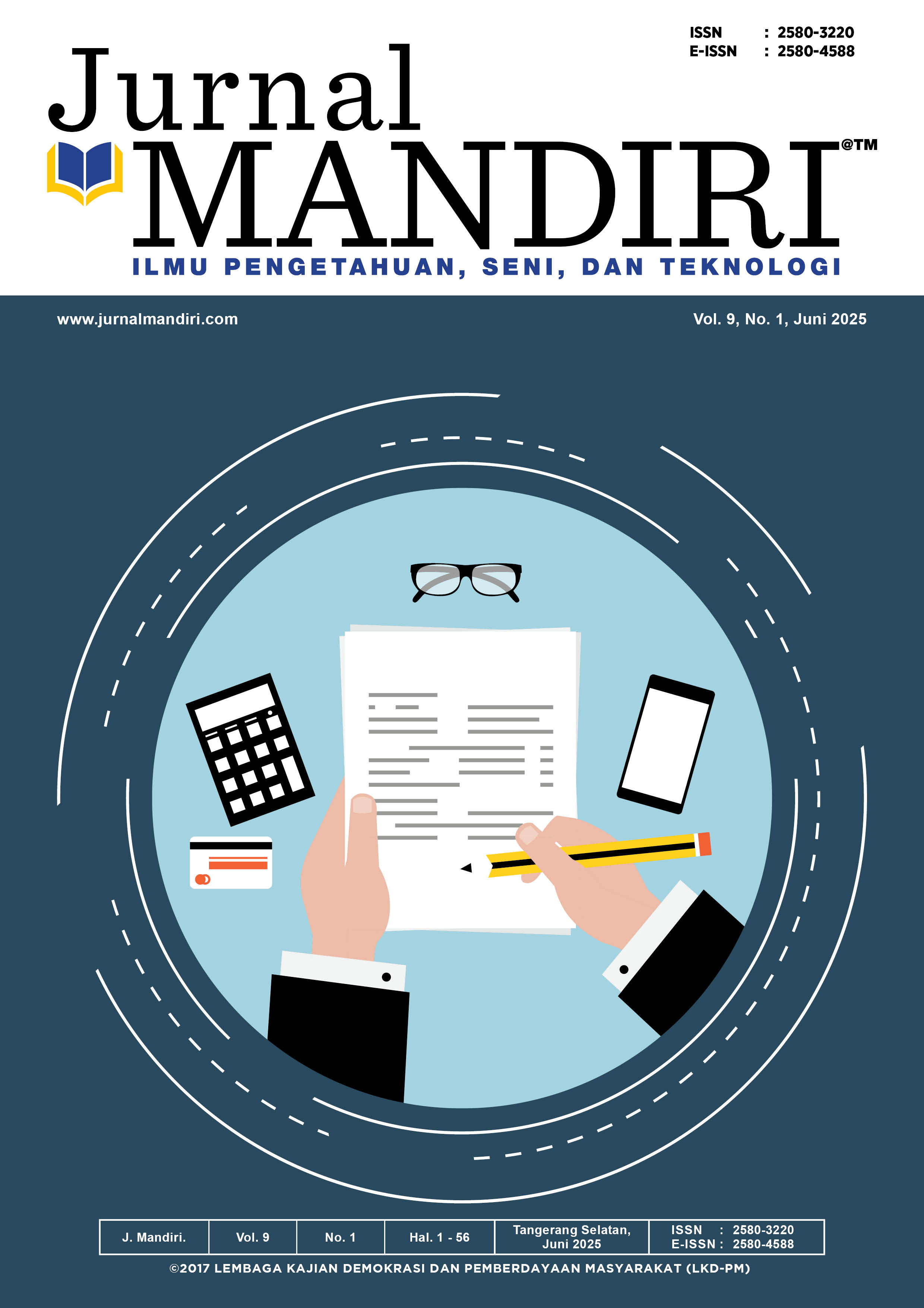 JURNAL MANDIRI : Ilmu Pengetahuan, Seni, dan Teknologi, Vol. 1 No. 1, Juni 2017, merupakan kumpulan tulisan dari berbagai disiplin ilmu. Mulai dari bidang ekonomi, agama, politik, bisnis, dan pendidikan. Misalnya, bagaimana pengaruh pemberian kredit terhadap pendapatan UKM, strategi bisnis dan pemasaran dalam suatu perusahaan, pengaruh makro ekonomi dalam pasar saham serta hal-hal yang menyangkut profitabilitas dan ukuran perusahaan terhadap perataan laba.